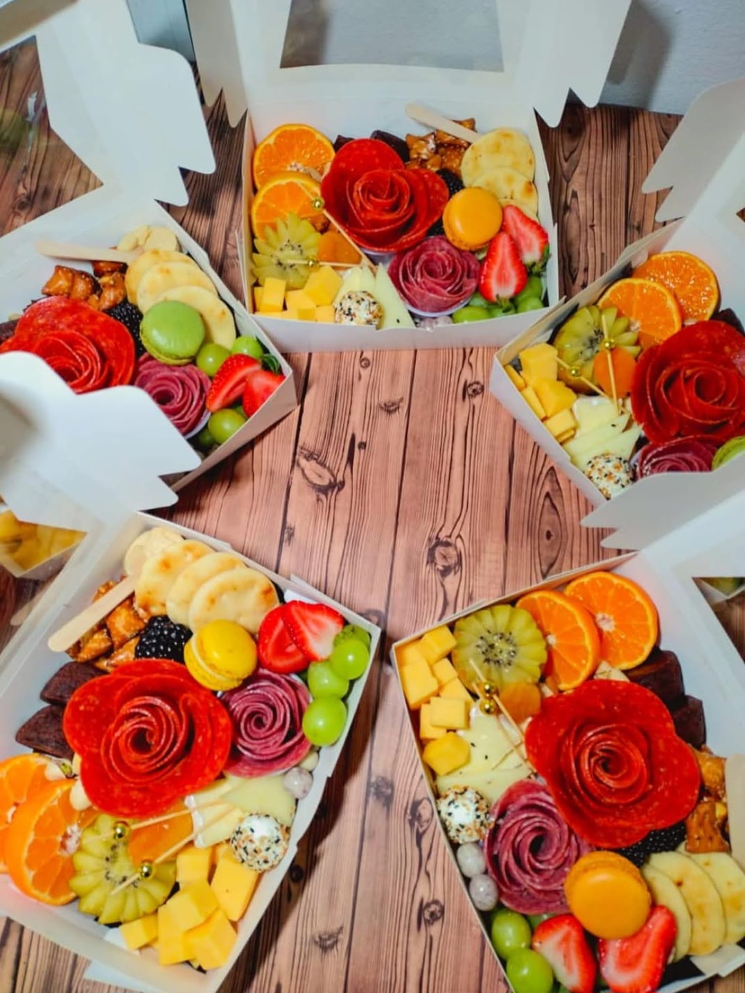 Date night or gift size-box with meats, cheeses, fruits nuts & sweets.
